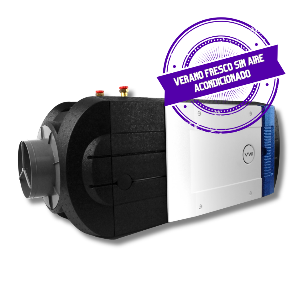 Combate eficazmente la humedad, el CO2, los COV y el radón, al tiempo que precalienta el aire entrante para mejorar el confort térmico. La insuflación evita la humedad por capilaridad, reduce las infiltraciones parásitas y mejora notablemente la calidad del aire interior.