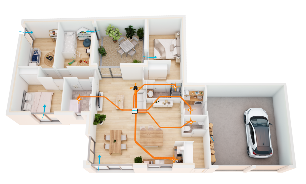 Dans un logement, l’humidité, les odeurs et les polluants invisibles dégradent rapidement la qualité de l’air intérieur. Chaque jour, la respiration, les douches, la cuisine ou le séchage du linge génèrent plusieurs dizaines de litres de vapeur d’eau. Sans renouvellement d’air maîtrisé, cette humidité excessive peut entraîner condensation, moisissures, inconfort et dégradation du bâti. La VMC simple flux par extraction apporte une réponse fiable, éprouvée et performante. Elle assure un renouvellement continu de l’air, extrait l’air vicié dans les pièces humides et contribue à maintenir un taux d’humidité entre 40 % et 60 %.