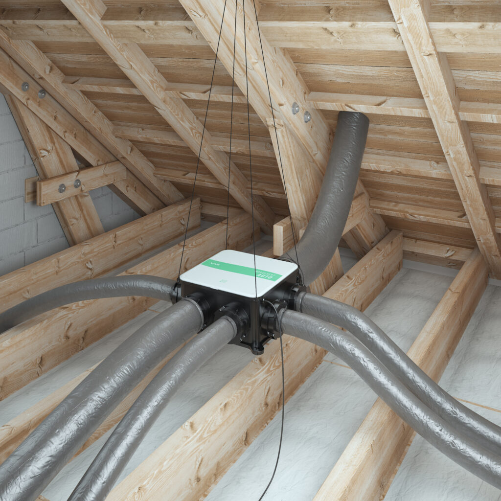 Conçue pour assurer un renouvellement d’air permanent dans les logements jusqu’à 4 sanitaires + 1 cuisine, elle combine performance et compacité pour s’installer facilement en combles, faux-plafond ou local technique étroit. Ses 7 piquages Ø125 mm convertibles en Ø80 mm offrent une liberté d’installation maximale, pour une pose ultra-flexible.