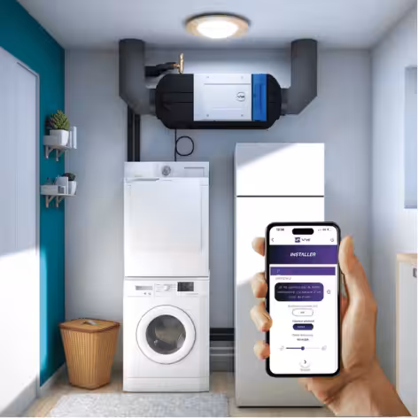 Pour le pilotage, l’application VMI+ simplifie la vie des installateurs. Elle permet de paramétrer la Purevent et d’assurer sa maintenance.