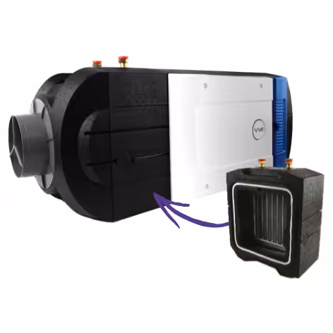 Avec l’Hydro’R, la Purevent passe à la vitesse supérieure. Ce module compact de 17 cm vient se plugger directement sur l’unité pour transformer la ventilation en solution deux-en-un : qualité d’air + confort thermique.